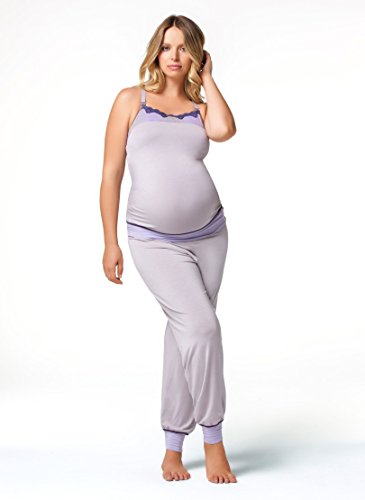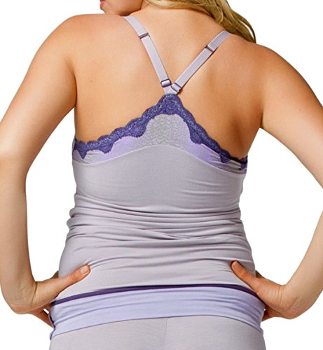 The soft, comfortable Cake Sugar Plum Cotton Modal Maternity Nursing Camisole 40-1027-80 is a great figure-hugging camisole. The cotton modal fabric is soft and features snakeskin detail at the top and lace edging. A hidden mesh shelf bra with removable padding provides a secure and comfortable fit, that grows with your curves. This comfy camisole has a soft elastic band around the bottom that creates a blouson effect that looks great. Pair with the Sugar Plum pants for a super comfortable lounging look and feel.