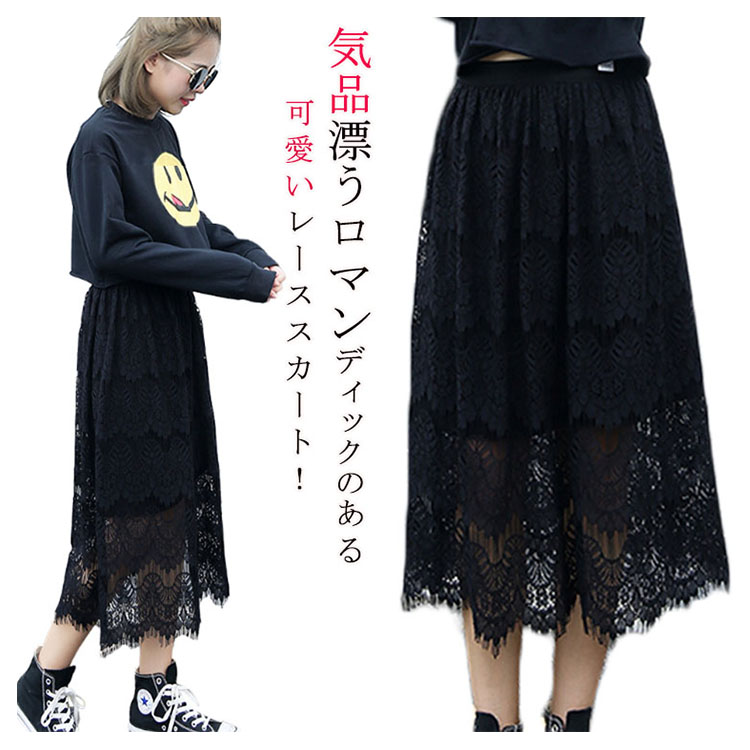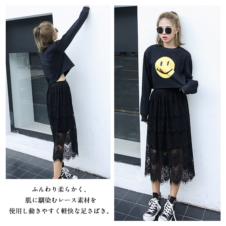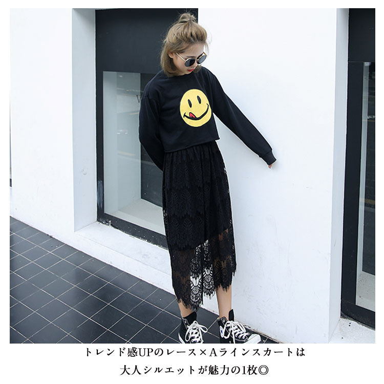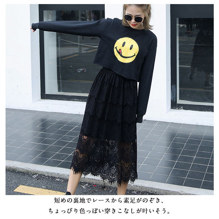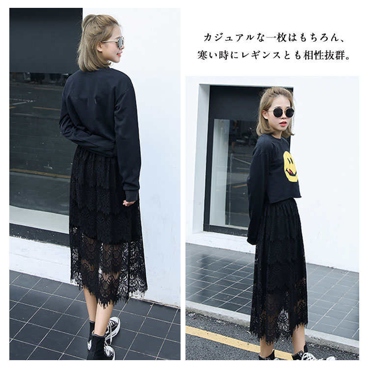| 気品漂うロマンディックのある可愛いレーススカート!トレンド感UPのレース×Aラインスカートは大人シルエットが魅力の1枚◎ふんわり柔らかく、肌に馴染むレース素材を使用し動きやすく軽快な足さばき。短めの裏地でレースから素足がのぞき、ちょっぴり色っぽい穿きこなしが叶いそう。カジュアルな一枚はもちろん、寒い時にレギンスとも相性抜群。 | |