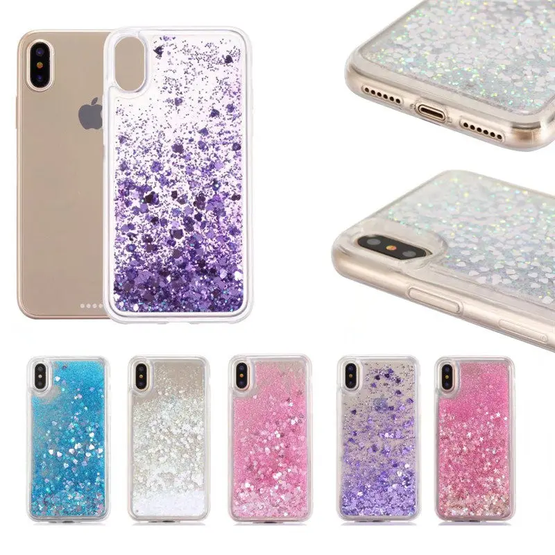 Features:Love Heart Glitter Stars Dynamic Liquid Sand Bling Quicksand Cover