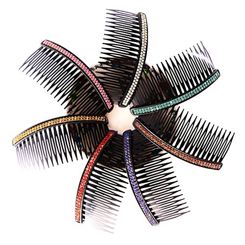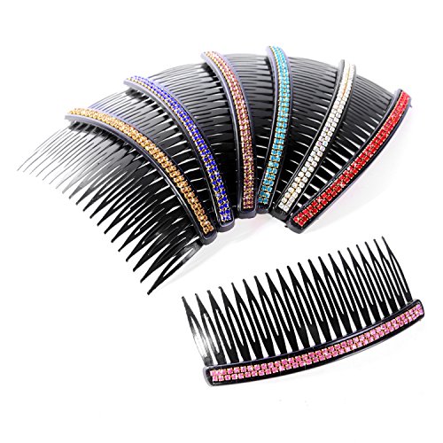 Features: Lightweight and durable: These hair clip combs are made of plastic material and imitation diamonds, which are firm and durable, lightweight hair comb clips are comfortable to wear as well. Each comb has 2 rows of imitation diamonds, which are glittering and shiny under lights, these imitation diamonds are in different colors, such as red, gold, blue, pink and so on. Daily hair accessory: These hair combs are good for brides to wear on wedding days, comb clips are good for fixing hair, suitable for girls as daily hair accessory, good for many occasions such as party, prom, balls and wedding ceremony. Useful for anchoring tiaras and adornments, DIY many hair pieces, headdresses and craft project, can be embellished, sewn onto wedding veils, etc. Specification: Length: 10 cm/ 3.93 inches Width: 5 cm/ 1.96 inches Quantity: 7 pieces Colors: assorted colors Package includes: 7 x Hair comb Note: Plastic comb teeth, please do not use it with too much strength, or it will be broken. 0