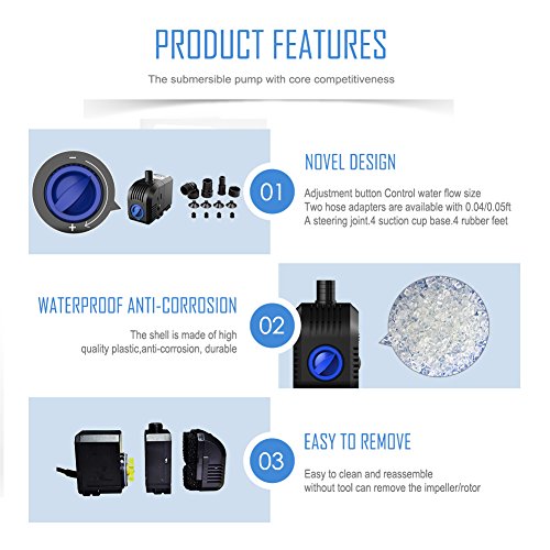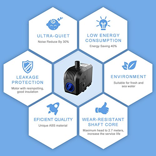Perfect apply to fountain, fresh and saltwater aquariums, rockery ponds, hydroponic systems and filter systems