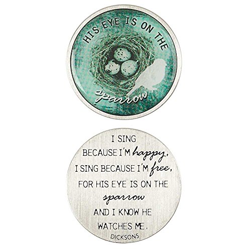 His Eye on Sparrow Robin Egg Blue Bird Round Metal Inspirational Hand Held Pocket Stone