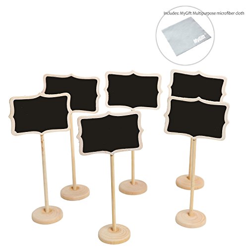 MyGift Set of 6 Freestanding Erasable Wood Chalkboard Wedding Dinner Party Table Place Card Signs, White