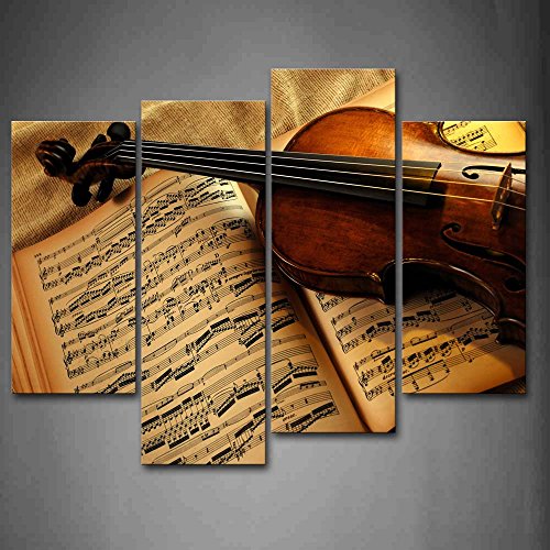 -. Title : First Wall Art - Brown Violin And Its Music On The Cloth Wall Art Painting The Picture P.R.Int On Canvas Music Pictures For Home Decor Decoration Gift