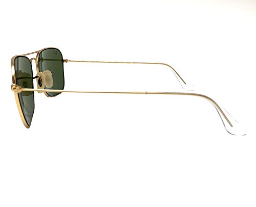 Originally launched in 1957, Ray-Ban Caravan sunglasses are a streamlined, geometric model and an alternative to the classic Aviator Sunglasses . The Ray-Ban signature logo is displayed on the nose pads and lenses. The Caravan features Square Sunglasses lenses and frames, as opposed to the teardrop lens shape sunglasses seen in the Aviator.Feature
