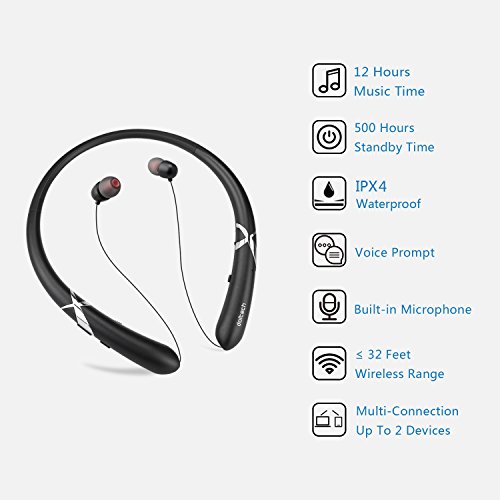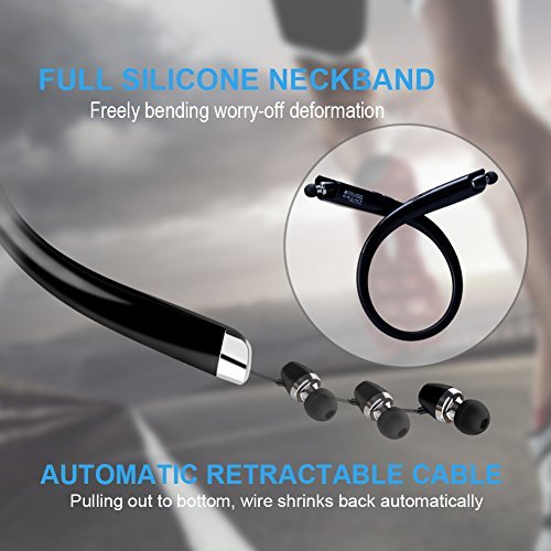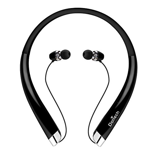 Dootech Bluetooth Kopfhorer, DolTech Stereo Wireless Headset Neckband Einziehbarer Sport Earbuds mit Mic Noise-Cancelling, Sweatproof Bluetooth 4.1 fur iPhone IOS Android( (HWS990 Schwarz)