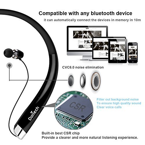 [Einziehbare Ohrhorer]: DolTech 918 Bluetooth Headsets mit versenkbarem Draht-Management halt Ihren Draht von Masse, gut fur Outdoor-Sport und Innen-Heim-Freizeit. Wirklich deine Hande frei.