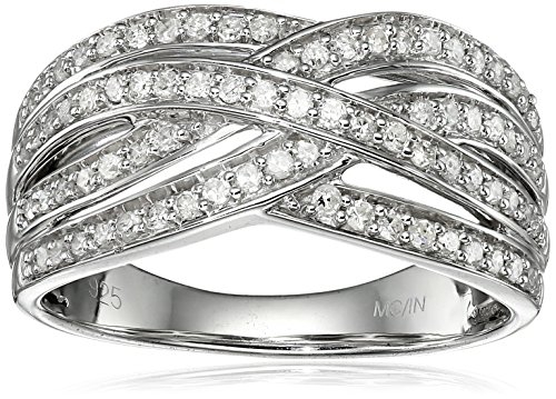 Sterling silver taper-shank ring featuring interwoven channels of pave-set white diamonds