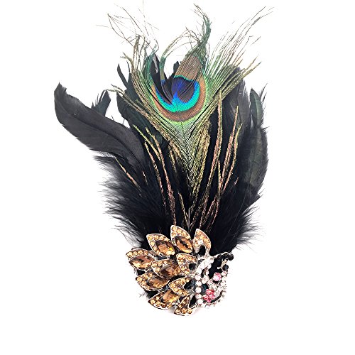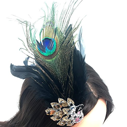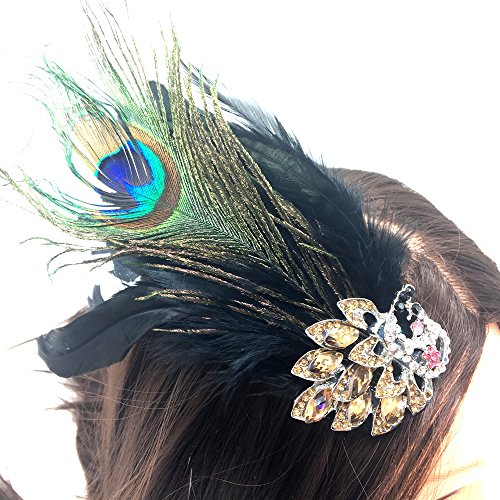 Rocinha Peacock Feather Hair Clip Fascinator with Rhinestones Crystal Patchwork Women Guest Corsage Flowers For Party