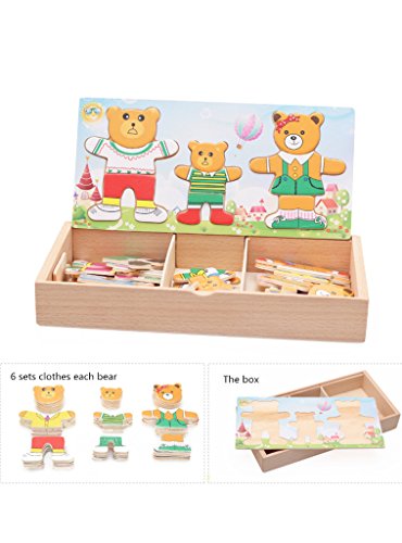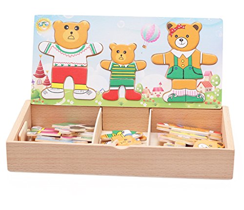 -. Binding : Toy -. Brand : Missfly -. EAN : 6011993989016 -. Feature : Dress up bear in many different outfits, matching or mixed up! / Great for developing co-ordination, dexterity and of course the imagination. / Wooden box has compartments for easy storage / Ages 3 years and up / Wooden Bear Dress-Up Puzzle Size: 5.5" x 11.4" x 1.9" -. IsAdultProduct : 0 -. Label : Missfly -. Manufacturer : Missfly -. ProductGroup : Baby Product -. ProductTypeName : TOYS_AND_GAMES -. Publisher : Missfly -. Studio : Missfly -. Title : Missfly Wooden Bear Family Dress Up Puzzle Box Fun Jigsaw Puzzle