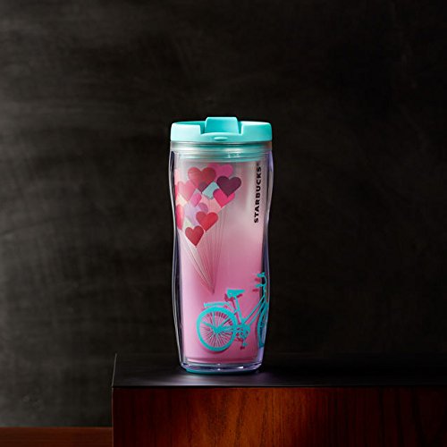 -. Brand : S.T.A.R.B.U.C.K.S -. EAN : 0762111103079 -. Feature : This acrylic tumbler features an aqua blue bicycle design P.R.Inted on the exterior and translucent heart balloons on its art insert / The translucent yellow inner liner with pink gradient lends a beautiful blush of color to the background / The tumbler's double wall construction helps protect hands while the aqua flip top lid helps minimize spills. / Grippy rubber base. S.T.A.R.B.U.C.K.S® name in black on the side. Holds 12 fl oz. Hand wash only. Do not microwave / Part of the Valentine's Day Collection. -. ProductGroup : Kitchen -. ProductTypeName : KITCHEN -. Title : S.T.A.R.B.U.C.K.S Valentines Day Collection Acrylic Double-walled Tumbler Bicycle and Balloon Art 12 Oz -. UPC : 762111103079