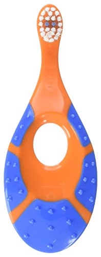 - Ergonomic shaped handle good grip for both baby and parents. Colored bristles indicate amount of fluoride toothpaste to be used.