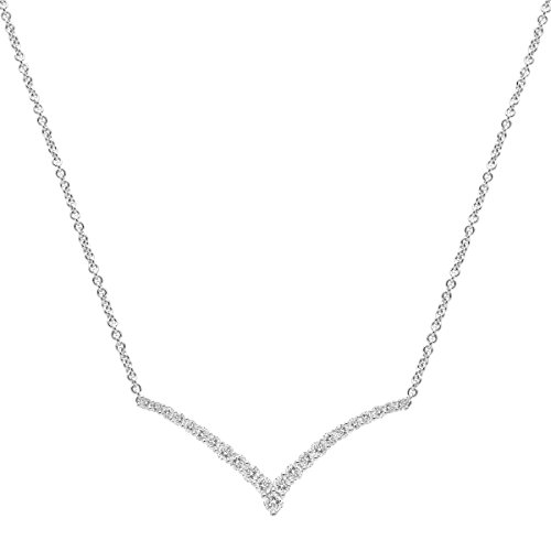 Instantly elevate your style with this classic piece. A wide V-shaped piece boasts several round-cut created white sapphires, totaling 1 1/2 ct in a setting of sterling silver. Piece measures 1 3/4 by 3/4 inches with a total length of 17 inches.Feature