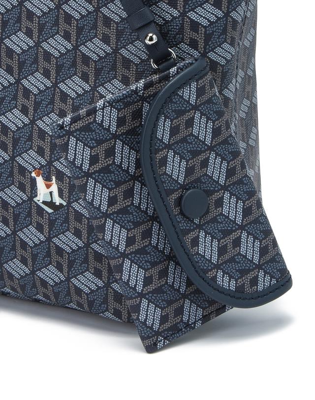 헤지스의 이니셜인 HZ를 큐브 모양을 형상화한 패턴에 강아지 아이콘을 결합하여 밝고 신선한 느낌을 주는 토트백입니다. 캔버스 소재의 내부를 뒤집어서 색다른 느낌으로 연출이 가능합니다.