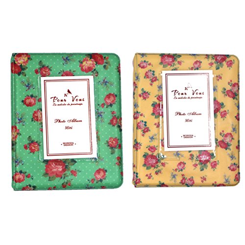 Instax Album Set,Botokon Bundles Set of 2 Vintage Flower Floral Mini Photo Album,3-inch Business Credit Name Card Holder with 64 Pockets Slots,for Fuji Fujifilm Instax Mini 8 90 Polaroid(Green+Yellow)