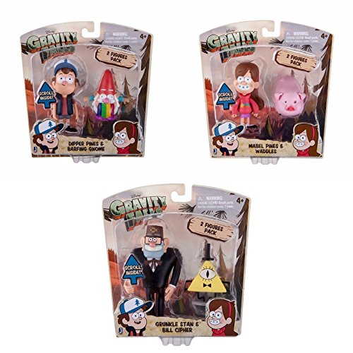 - Title : Gravity Falls 3-Inch Action Figure 2-Pack Bundle: Dipper Pines & Barfing Gnome, Mabel Pines & Waddles, Grunkle Stan & Bill Cipher