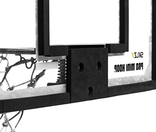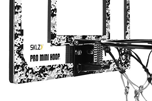 Hoop and support the troops with the quick-mounting Pro Mini hoop rebound. The break-away rim, shatterproof backboard, and camo rubber ball make it perfect for the bedroom or game room.