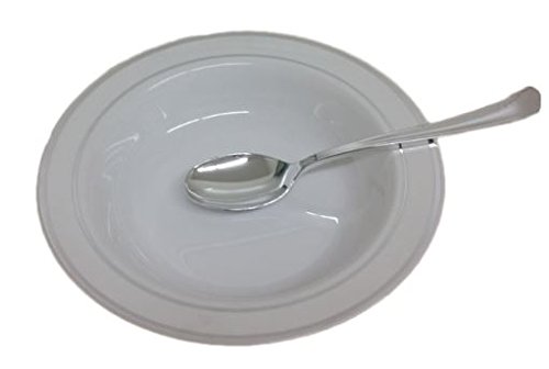 15 Disposable White Soup Bowls With Silver Rim. 12 Oz. Elegant Plastic Soup Plates.