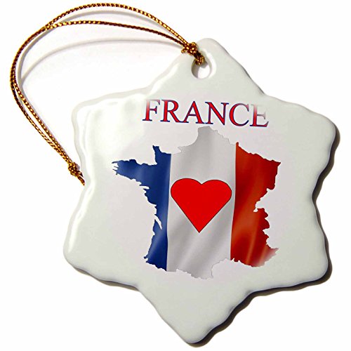 -. Binding : Kitchen -. Brand : 3dRose -. Feature : High gloss finish / Overall size is 3 inches / Image printed on both sides / Gold string included for easy hanging / Great keepsake to commemorate any special occasion. -. Label : 3dRose LLC -. Manufacturer : 3dRose LLC -. ProductGroup : Home -. ProductTypeName : HOME -. Publisher : 3dRose LLC -. Studio : 3dRose LLC -. Title : 3dRose Florene Maps In Exotic Outline - Image of Exotic France Map In Flag Colors With Big Heart - Ornaments
