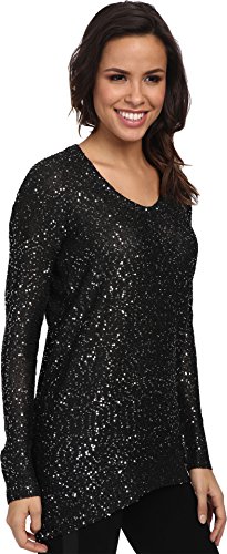 Rounded neckline. Long sleeve construction. Shirt-tail finish in the back. Draped hemline. 100% polyester. Hand wash cold, flat dry. Imported.