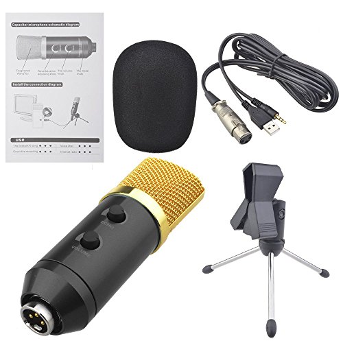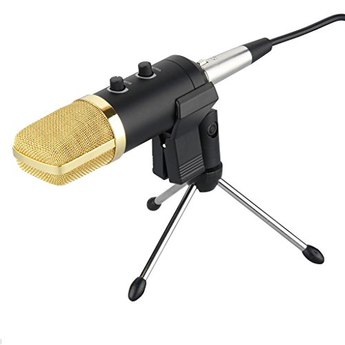 -. Feature : The microphone has built-in Reverb chip. Adjust the reverb knob on the microphone to add perfect reverb effect. No need for sound card. / Shock Mount to reduces handling noise, ideal for radio broadcasting studio, voice-over sound studio, recording home recording, gaming and video chat and so on / The Mic Shock Mount With Standard screw adapter, you can mount it on all the standard microphone stands / With Cardiod(undirectional) pickup pattern supresses feedback + Tailored frequency + Neodymiun magnet + low self-noise: Can be suitable especially for studios, recording studios, broadcasting stations, adage performances and computer. / With the USB terminal to supply power, the condenser microphone needs no 48V phantom power, battery, Mixer, or other assistive devices.