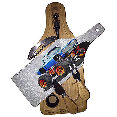Space Case Off Road 4x 4와인&치즈 세트 유리 커팅 도마 보드