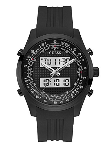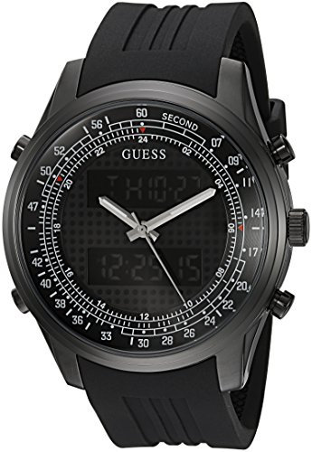 GUESS Men's U0862G2 Trendy Black Stainless Steel Watch with Digital Dial and Black Strap Buckle