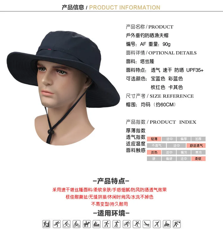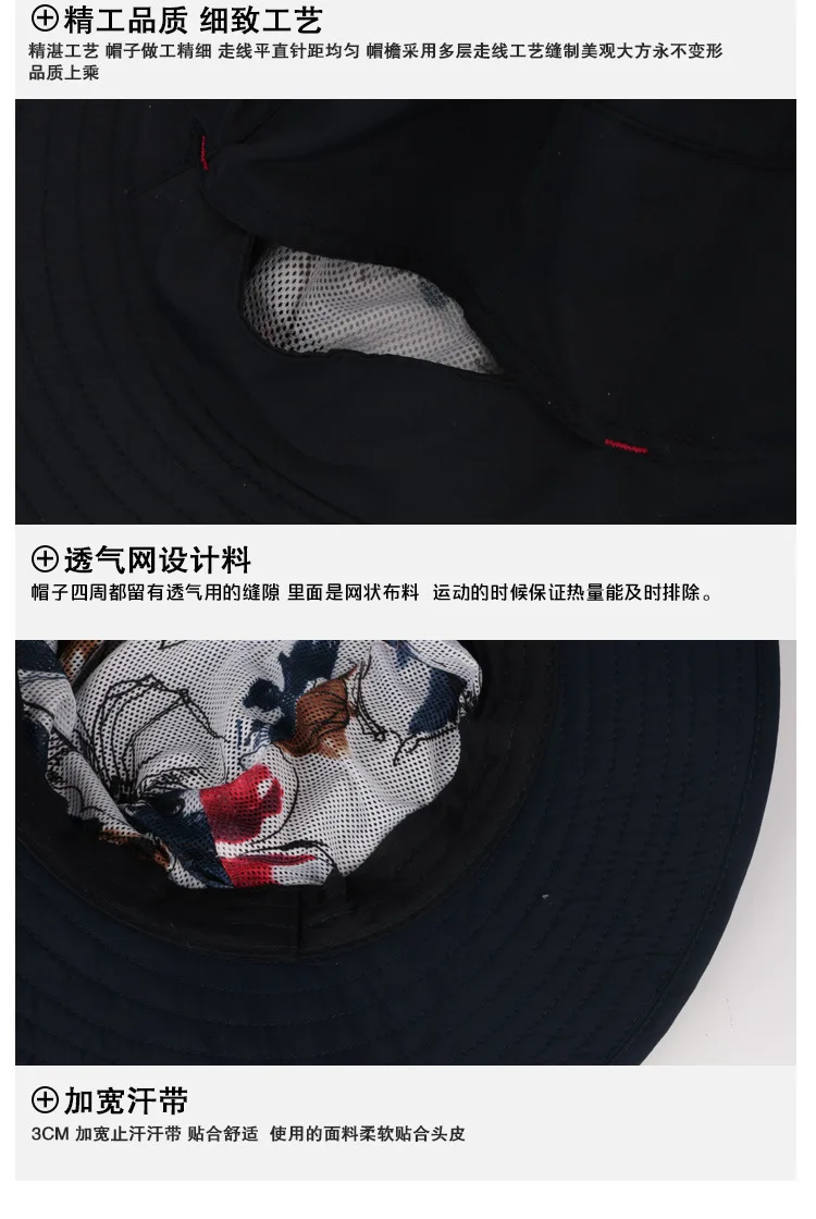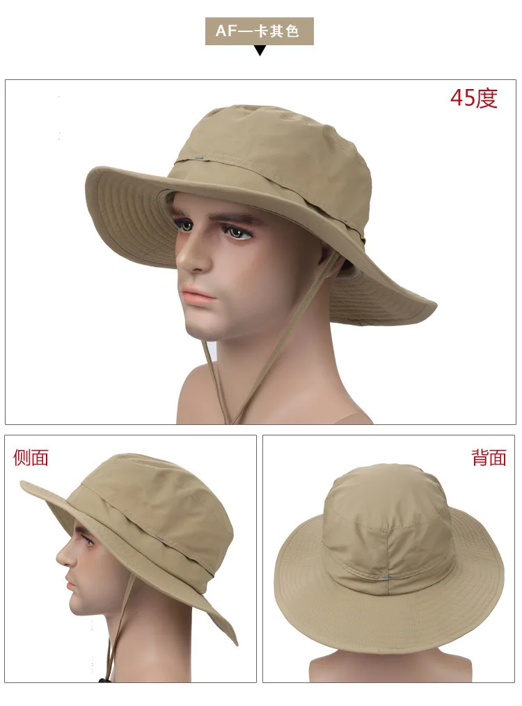| [해외]야외 남성 모자 여름 양동이 모자 챙이 넓은 통기성 태양 모자 하이킹 어부의 속 헬멧 등반 정글 캡 |