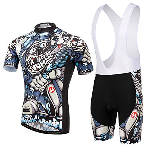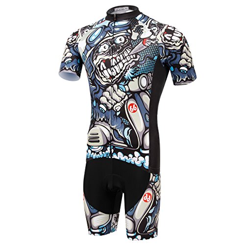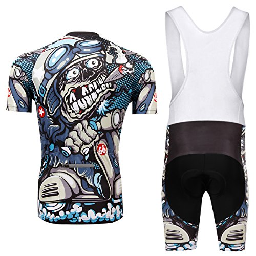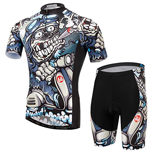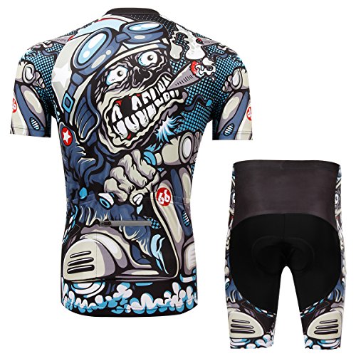 TeyxoCo Men Cycling MTB Cartoon Skull Gel Pad Bid Jersey Set M