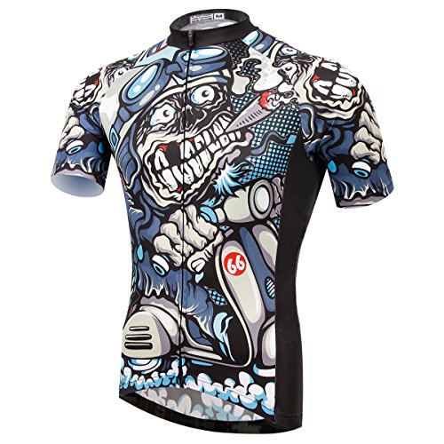 TeyxoCo Men Cycling Cartoon Skull Sportwear Jersey Top L