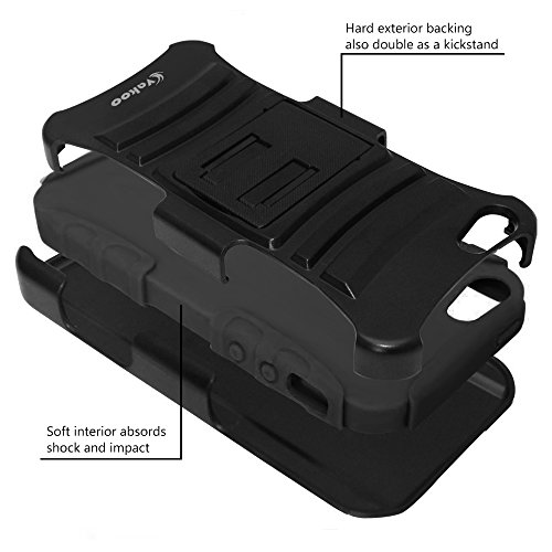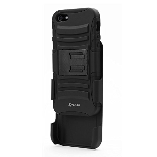 VAKOO Belt Clip Shockproof Rugged Case Cover for Apple iPhone 5S / iPhone 5: The case is composed of Two parts, the back cover (with stand) and a locking belt clip swivel holster (With shockproof function and swivel Kickstand)