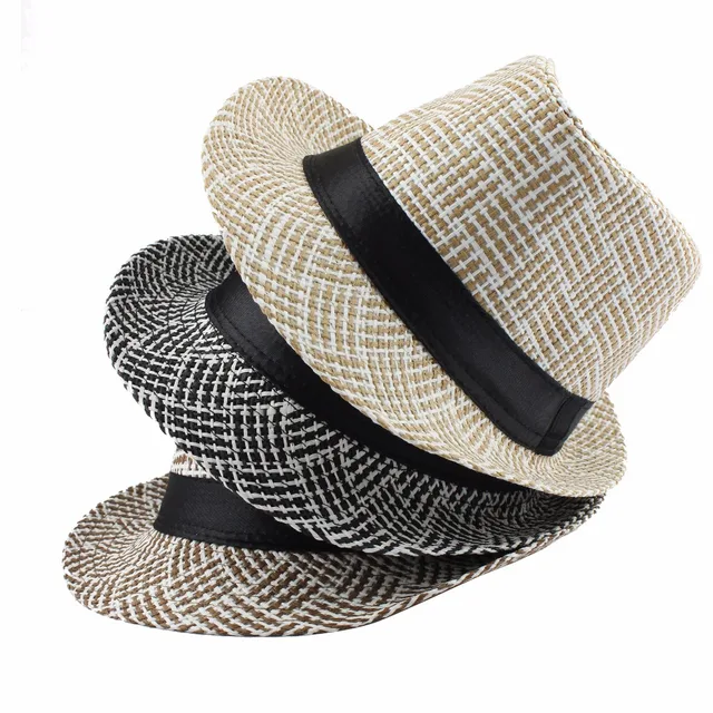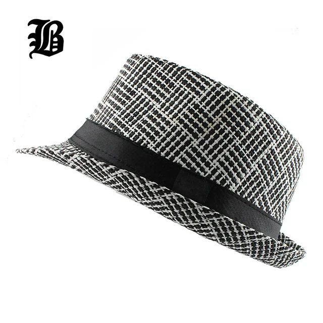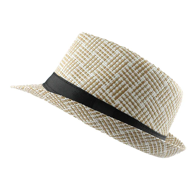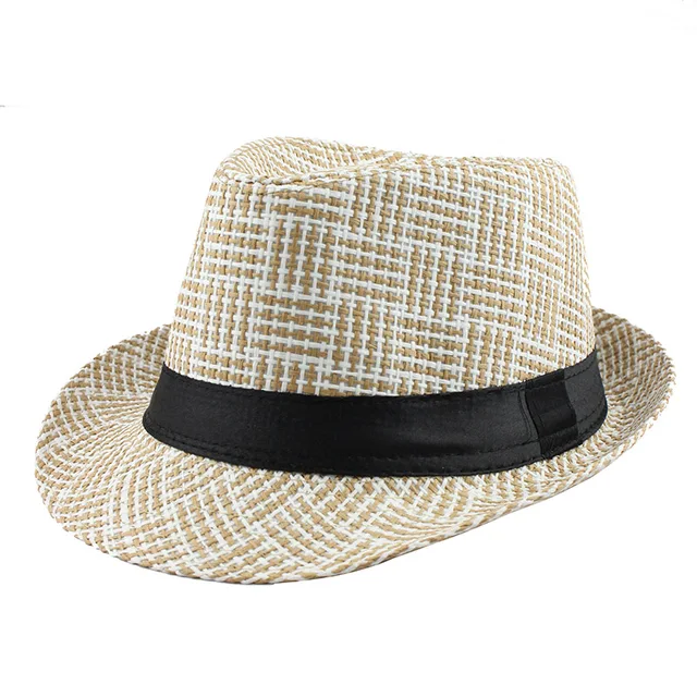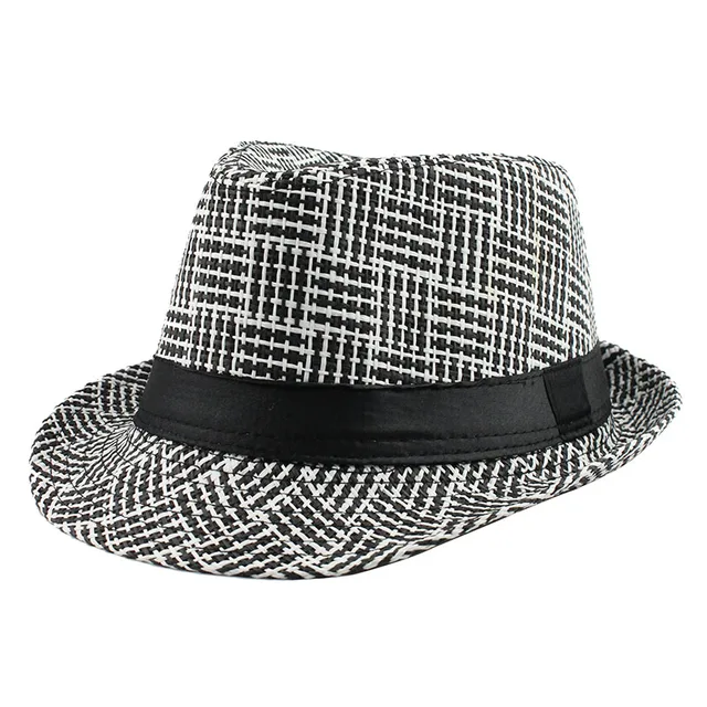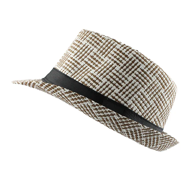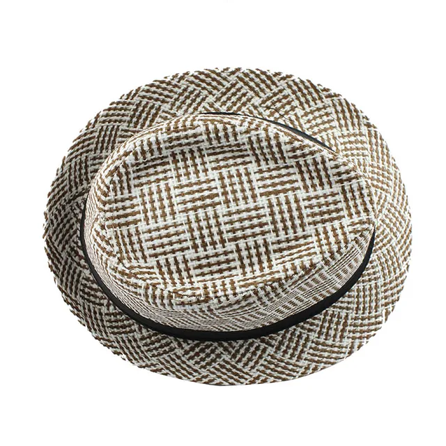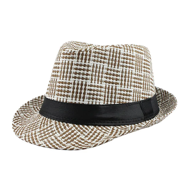 | [해외][FLB] 유행 남녀 사이드 페도라 트릴 갱스터 캡 여성 남성 여름 해변 일 밀짚 파나마 모자 남성 패션 격자 모자 |