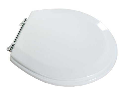 [Product Information]- LDR 050 1244WT Deluxe Toilet Seat, Chrome Hinges, Round Beveled, White. Molded Wood Seat with Chrome Hinges. Beveled lid edge. Durable painted finish. Easy to install hinges come with non-corrosive nuts. Limited Lifetime Warranty.