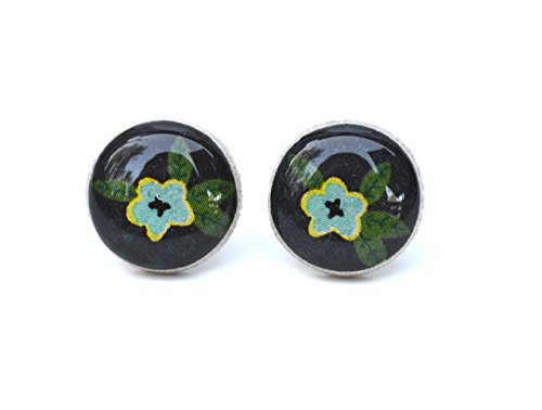 -. Title : Black and blue flower stud earrings. Black stud earrings