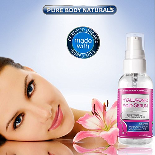-. Binding : Misc. -. Brand : Pure Body Naturals -. Color : Clear -. Department : womens -. EAN : 0820103744355 -. Feature : NATURAL & ORGANIC hyaluronic acid serum is considered to be the highest quality HA serum on the market. / BEST NATURAL and ORGANIC ingredients to give you MAXIMUM Anti-Oxidant Protection to help ELIMINATE Free Radicals on your Skin That Causes Premature Aging. / SUPER SOFT SILKY SMOOTH HYDRATED & RESTORED SKIN : Our Serum moisturizers your skin and is power packed with Hyaluronic Acid, Vitamin C, and Vitamin E. / REDUCES your Fine Lines & Wrinkles - helps to stimulate your skins rate of exfoliation for a brighter, smoother complexion. Deals with the Antioxidant properties that will reduce skin damage caused by the sun. / GUARANTEED (OR MONEY BACK ! ) TO HAVE CLEARER, SMOOTHER BEAUTIFUL SKIN: Fast results because of Hyaluronic Acid Serum face serum absorbs rapidly into your skin, working to providing dramatic impact on reducing wrinkle size and giving DEEP Hydration. -. Label : Pure Body Naturals -. Manufacturer : Pure Body Naturals -. MPN : Hyaluronic Acid Serum -. PackageQuantity : 1 -. PartNumber : Hyaluronic Acid Serum -. ProductGroup : Beauty -. ProductTypeName : BEAUTY -. Publisher : Pure Body Naturals -. Size : 1 Oz -. Studio : Pure Body Naturals -. Title : BEST Hyaluronic Acid Serum For Your Face. Our Anti Wrinkle Facial Skin Care Brings Deep Hydration, Boost Collagen Production & Reduces Fine Lines. Anti Aging Moisturizer added Vitamin C & E. Natural Ingredients & Antioxidants Helps Repair Sun Damage 1 FL OZ -. UPC : 820103744355