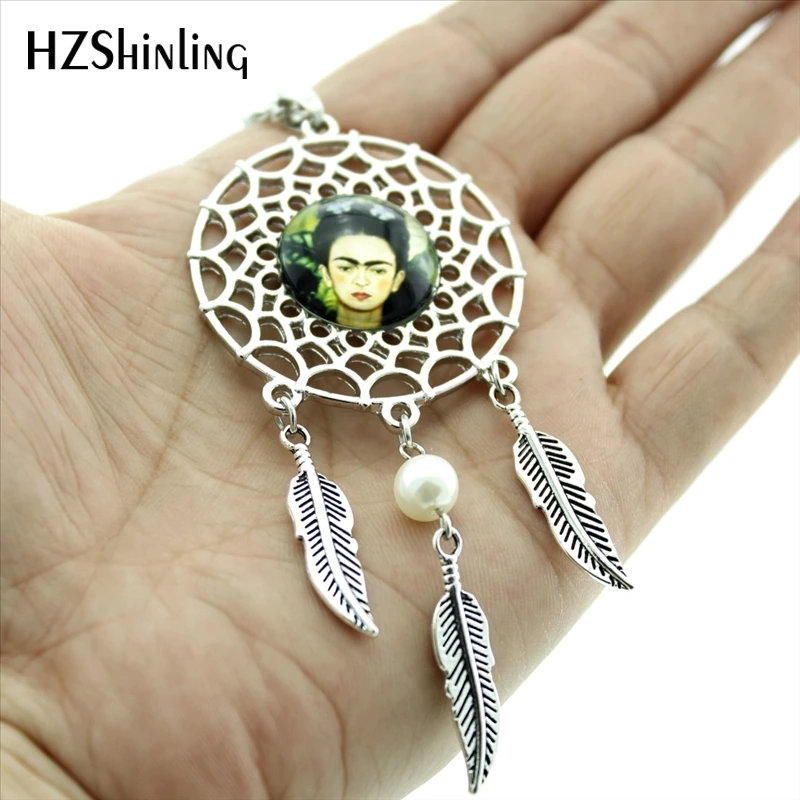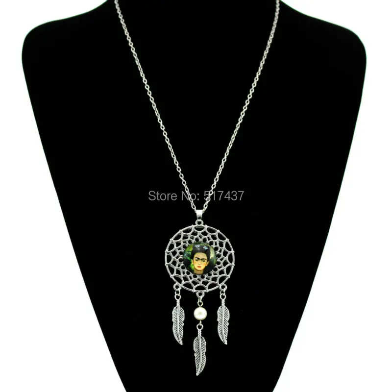 Hot:Handmade Vintage Glass Photo Dreamcatcher Necklace