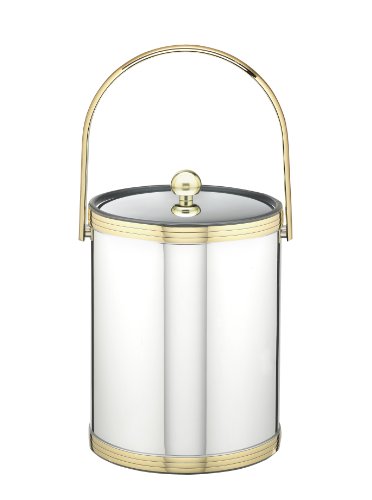 -. Title : Kraftware Polished Chrome and Brass Ice Bucket with Triband Accents and Track Handle - 5 Quart