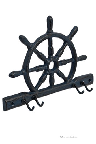 -. Title : Metal Blue Boat Helm Nautical Cast Iron 4-Hook Coat Hat Hanger Rack