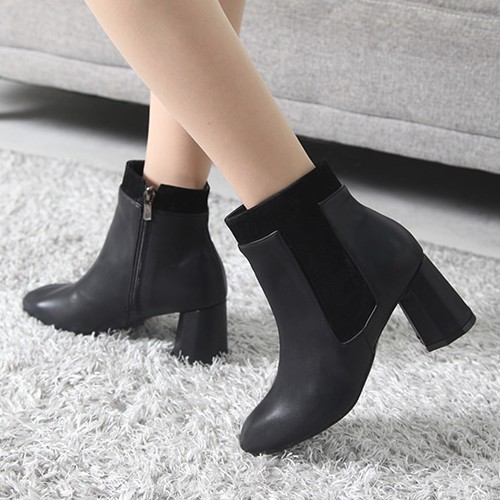 商品名:ショートブーツ レディース チャンキーヒール サイドゴアブーツ サイドジッパー 2017 秋冬 ファッション 靴 婦人靴
