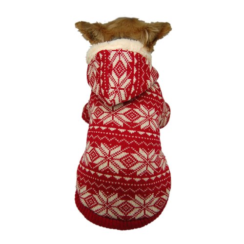 -. Title : Anima Red Snowflake Hoodie for Pets