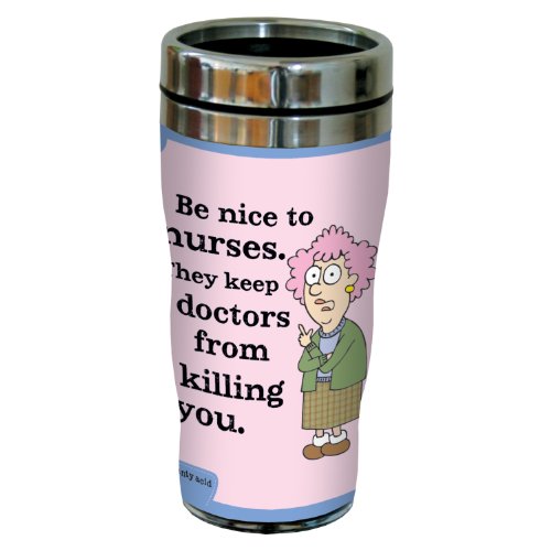Studio : Tree Free Publisher : Tree Free Binding : Kitchen Product Description Tree-Free Greetings strives to use the most eco friendly materials and processes possible. Printed and assembled in the USA, The Tree-Free Greetings 16 Ounce Sip 'N Go Stainless Steel Lined Tumbler is vibrantly printed with hard to find hilarious Aunty Acid art by The Backland Studio Ltd. and is great for everyday use. It is reusable therefore eliminating any disposable paper or styrofoam cup waste. BPA free and Proposition 65 compliant, this beautiful and durable tumbler is stainless steel lined, resists condensation, and holds 16 ounces of your favorite hot or cold beverage. To preserve the quality of your tumbler, hand washing is required. The Tree-Free Greetings 16 Ounce Sip 'N Go Stainless Steel Lined Tumbler makes the perfect gift or souvenir for any occasion. Save trees and spread joy. Buy a Tree-Free earth-friendly gift today. 0
