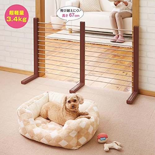 -. Feature : 主材:スチール、PVC(塩化ビニル) / サイズ(約):幅56-119×奥行27×高さ67cm、格子幅サイズ(約):4.5cm、重量(約):3.4kg / 中国製(企画・デザイン日本) / ※体重8kg以下の犬用ゲートとして、ご使用ください。※階段上で使用しないでください。 / ※設置サイズと商品サイズを必ずご確認ください。返品・交換をお受けできない場合がございます。※改良のため、仕様を変更することがあります。