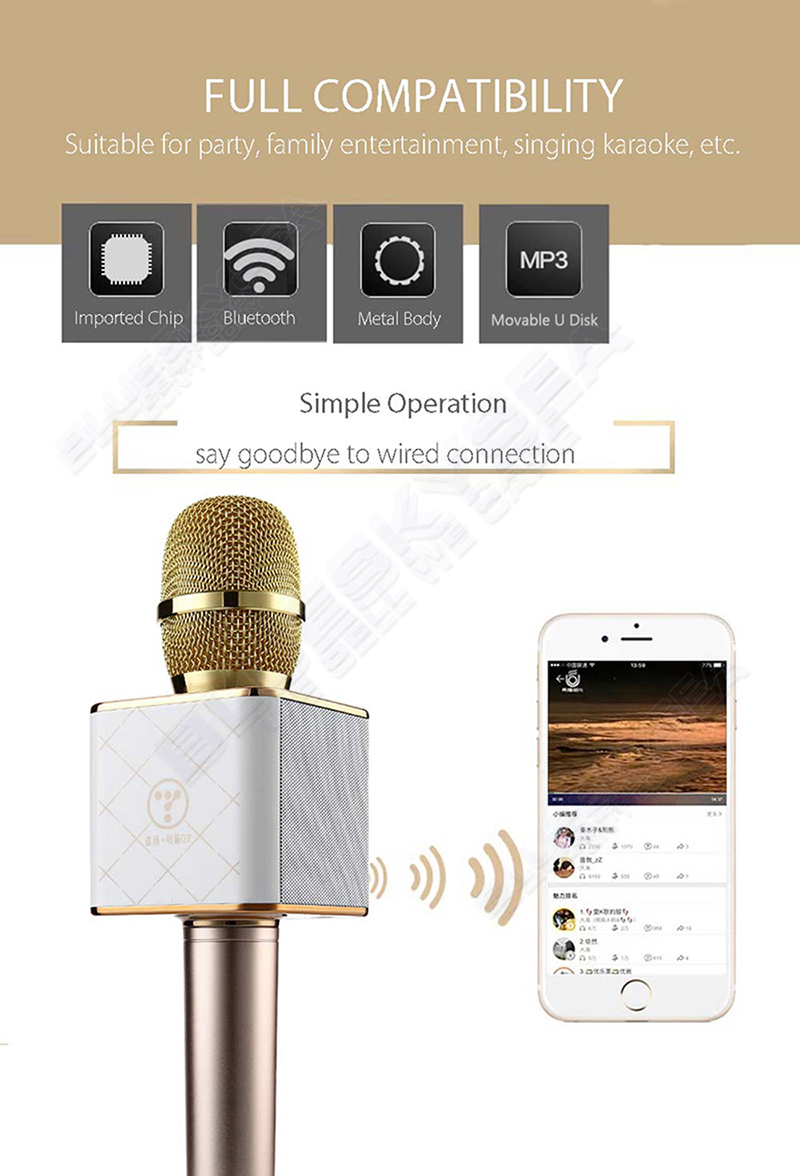 Noise cancellation function wireless capacitive microphone, you can enjoy singing wonderful music by yourself.