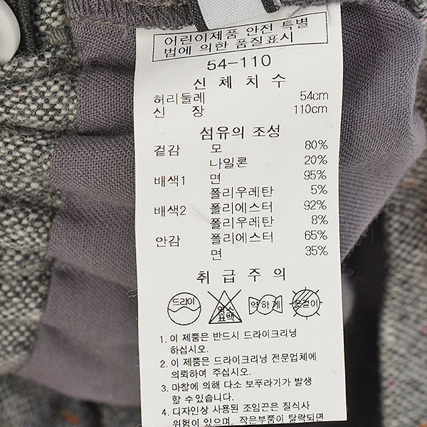 제품소재 : 겉감: 모80%나일론20% 배색1: 면95% 폴리우레탄5%배색2: 폴리에스터92%폴리우레탄8%안감: 폴리에스터65% 면35%