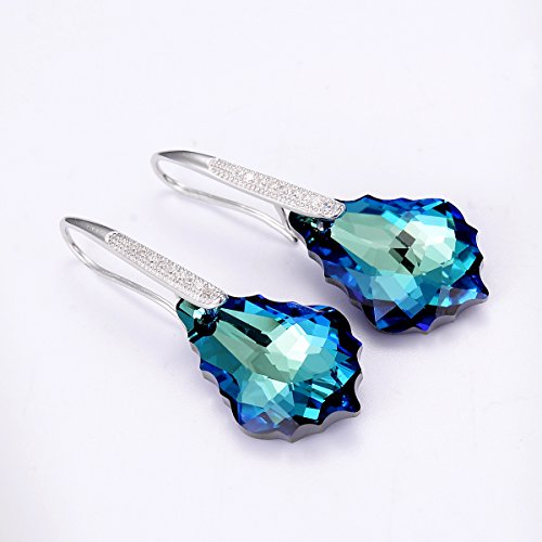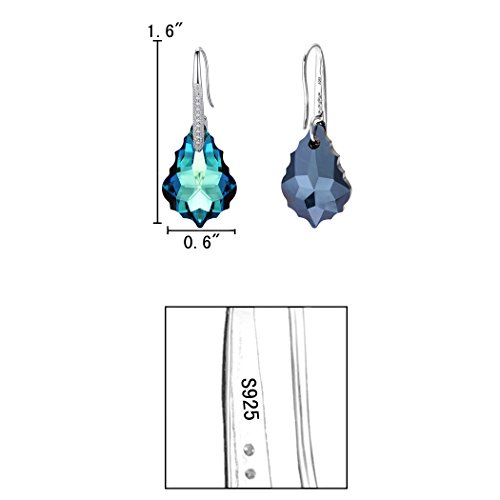 -. Title : EleQueen 925 Sterling Silver CZ Baroque Hook Drop Earrings Bermuda Blue Made with Swarovski Crystals