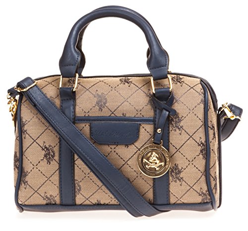 Impress everyone with your exclusive sense of style by taking the US Polo Logo Jacquard Mini-sized Women's Satchel Bag for weekend brunches. Styled with multiple zipped compartments and a slip pocket in front, this satchel bag is comfortable to carry due to the rolled handles provided on top. It is also bedecked with the brand's print throughout the design. Features: Polyester construction Slip pocket in front accented with brand's logo Brand medallion accented Faux leather and gold-toned hardware detailing Ships immediately, 100% Satisfaction guarantee, no questions asked Return policy, and Customer Service is our top priorityFeature