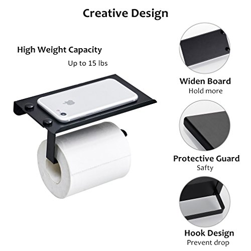 Storage Shelf:Toilet paper holder with storage shelf, convenient to hold your mobile phone or other trivial things while sitting on the toilet.