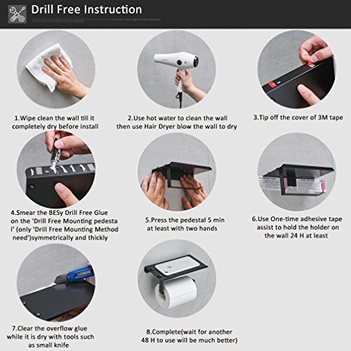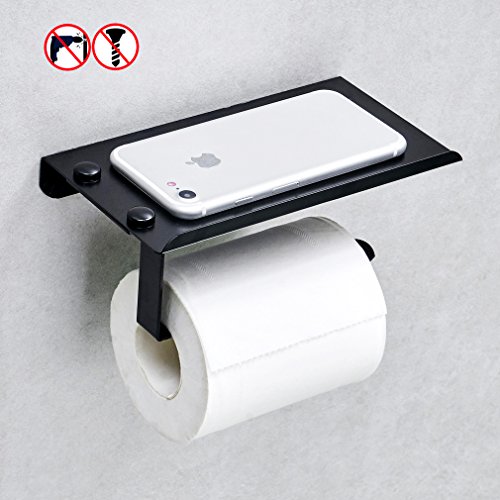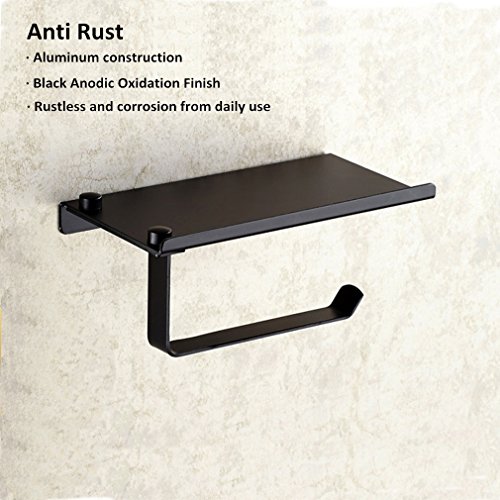 BESy No Drill Toilet Tissue Paper Holder Aluminum Creative Multifunction self adhesive Wall Mount Roll Paper ,Black