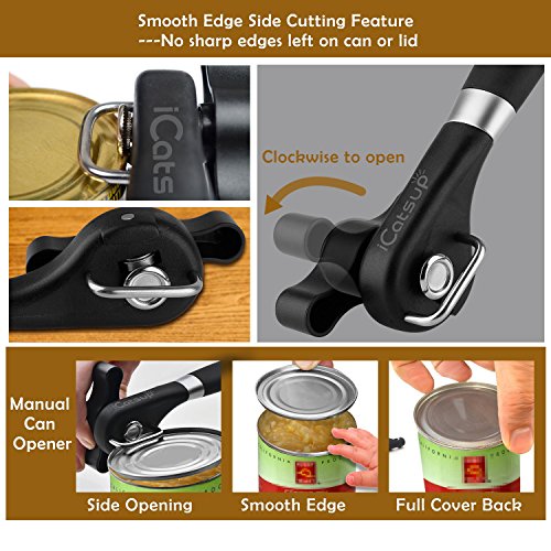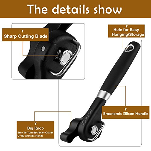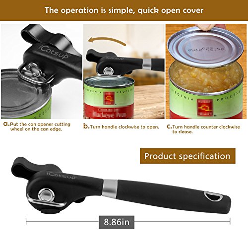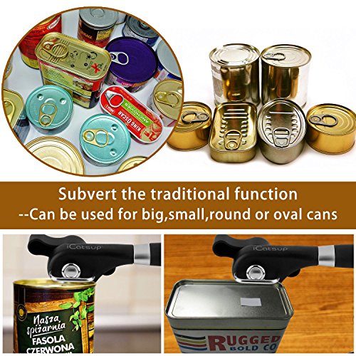 - 【Premium Quality】 - iCatsup can opener is made from superior quality stainless steel, high hardness ABS material that is durable and health & safe, which meets the food security standard. If you aren’t happy with the can opener, just simply contact us directly and we will quickly offer you a refund.