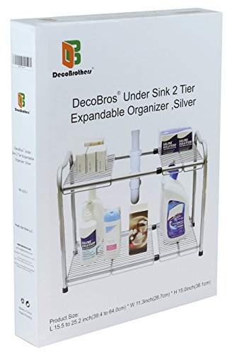 DecoBros Under Sink 2 Tier Expandable Shelf Organizer, Silver B00R6UQQZU
